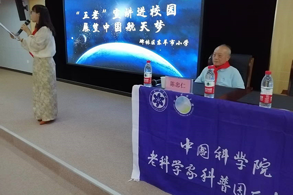 5月17日上午,中国科学院老科学家科普巡讲团西安分团团长、中国科学院西安光学精密机械研究所陈中仁研究员,为西安市碑林区东羊市小学570多位师生做题为 “展望中国航天梦-月宫寻宝”的科普讲座。该校大队辅导员主持,校长武文艳、副校长张化冰及班主任等出席或参加活动。