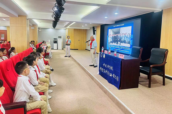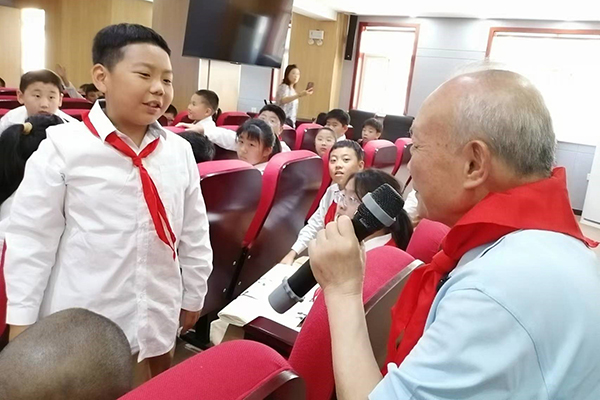 孩子们为陈中仁佩戴红领巾,致以崇高的少先队队礼,感谢老科学家们以科学报国的奋斗事业支撑起中华民族不屈的脊梁,使祖国变得更加强大。