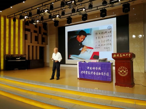 1955年中央决定原子弹制造会议上,毛泽东主席说:“就出兵朝鲜我用了三天,要不要搞原子弹我想了三年”;陈毅元帅说:“那怕裤子卖了,也要搞中国的原子弹”;张爱萍将军说:“再穷也要有一根打狗棍”。5月28日,中国科学院科学家科普团西安分团团长陈中仁研究员为西安高级中学500多名学生作《弘扬“两弹一星”精神,实现中华民族伟大复兴》的科学家精神报告开场讲。