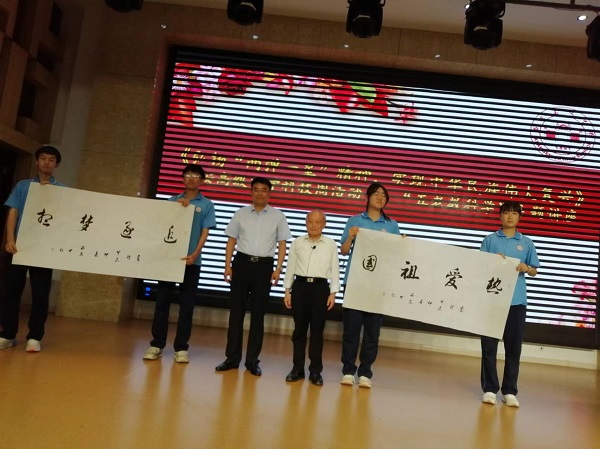 最后,陈中仁为学校赠送了自己书写的“热爱祖国,追逐梦想”的书法作品。