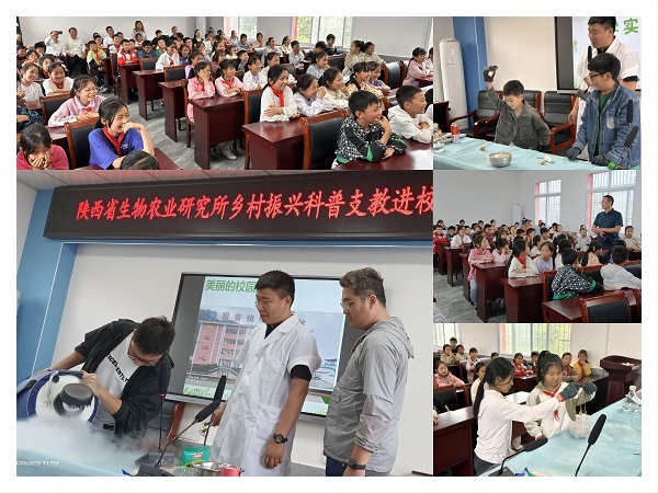 5月29日上午,由陕西省生物农业研究所所副所长李勃带队,研究所帮扶工作队一行冒着中雨到镇巴县兴隆镇中心小学带来了一场科学实验秀。陕西省优秀科普使者谭季钊博士带着各种实验器材和材料,现场为,通过掌上火焰、氦气变声、空气炮、舞动的乒乓球、酸碱变色、液氮冷冻-天女散花、液氮冷冻-香蕉砸核桃、液氮蘑菇云等10余项精心设计的实验,为同学们“揭秘”比热容、相似相溶、伯努利等科学原理,把复杂的物理、化学知识进行了形象化地展示。孩子们积极举手参与,近距离观察实验现象,踊跃动手实践。
