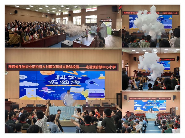 当天下午,支教团一行再次驱车50多公里翻山越岭来到观音镇中心小学,为师生进行科学实验秀表演。