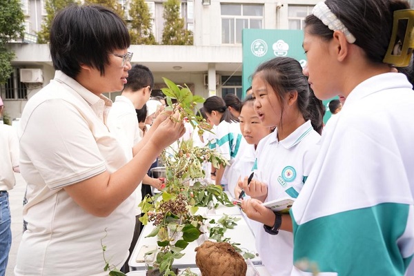 活动现场,来自西北大学生命科学学院赵宇玮教授和刘文哲教授为参加活动的高新一中初级中学、陕西师范大学附属中学的100余名师生分别带来了题为《作物驯化与人类生活》、《植物的爱情》主题报告,还就科学践行“大食物观”和开展高质量科普工作进行了现场交流。