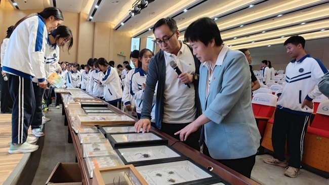 同时,张宇军带来了陕西省西安植物园的珍稀植物标本和昆虫标本,为学生们提供了一次近距离观察自然的机会。通过这些珍贵的标本,学生们不仅能够直观地了解植物和昆虫的形态特征,还能够学习到相关的生态知识。