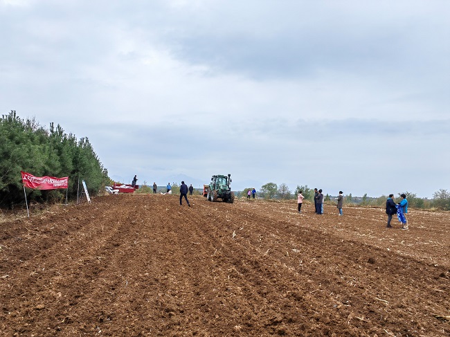 随后,满载新品种子的播种机开始忙碌起来,在工作人员的操作下,将新种一排排播种进示范田内。看着高产、高抗、优质的新品种小麦种子播种完成,种植户纷纷鼓起掌来。播种完成后,专家们走进示范田仔细查看播种情况,并对现场种植户进行专业指导。