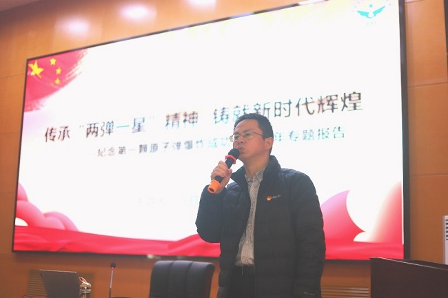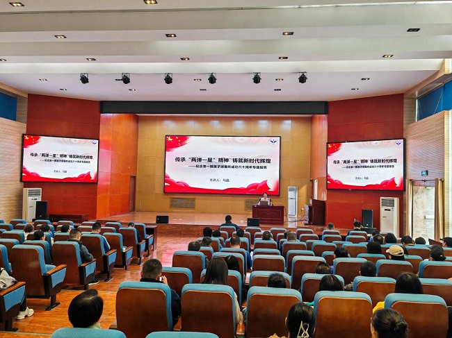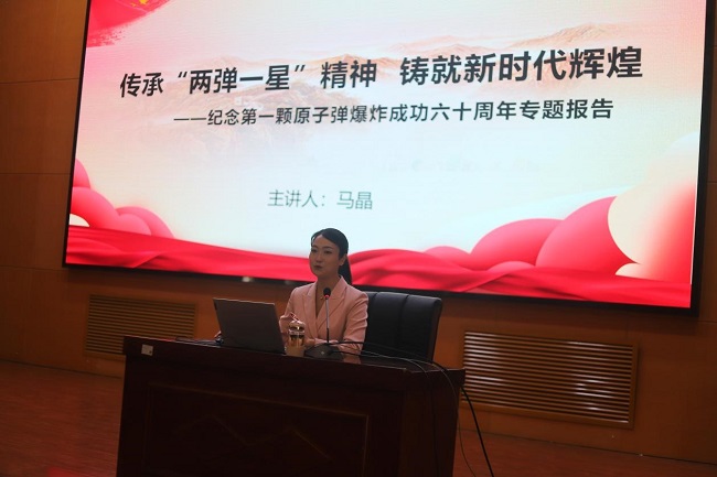 报告会上,青海两弹一星干部学院专职教师马晶通过“出征”“巨响”“会战”“追忆”“攻关”“铭记”六个部分的专题内容,讲述了“两弹一星”精神的深刻内涵,“两弹”元勋们以及一大批科技工作者为了新中国的前途和命运,舍小家为大家,克服种种困难,光荣完成使命的故事。报告会用一件件往事串联起来,深入浅出,专业性强,极具感染力,赢得了经久不息的掌声。