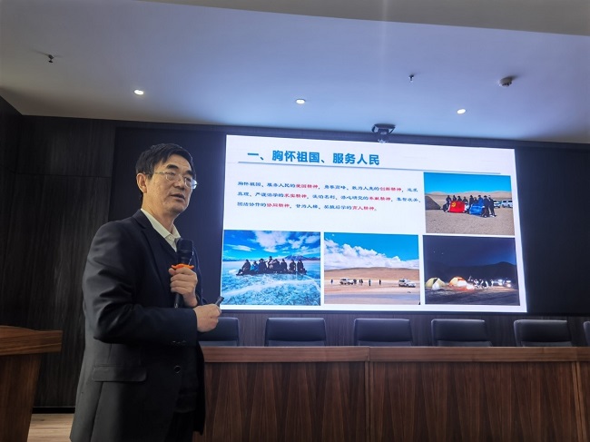 吴晓民研究员围绕党的二十大报告中关于“推动绿色发展,促进人与自然和谐共生”的战略部署,讲述自己带领科研团队二十余年来扎根青藏高原,揭示藏羚羊种群迁徙规律的奋斗历程,开创了我国道路建设与生态环境保护相结合的学科体系,介绍团队深入青藏高原腹地,采用卫星定位跟踪、无人机航测、远红外相机识别等技术来研究藏羚羊的迁徙规律和种群数量情况。