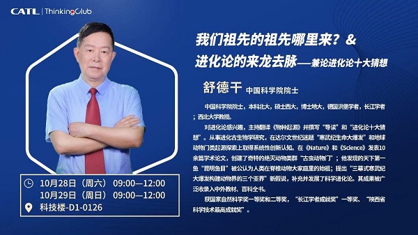 应宁德时代公司的邀请,10月28-29日,中国科学院院士 西北大学教授舒德干为该公司科技研发人员和职工代表作““澄江动物群与寒武纪大爆发”“人类与物种起源”专题报告,助力提升该公司科学文化和人文精神建设。两天六个小时的报告反响热烈。