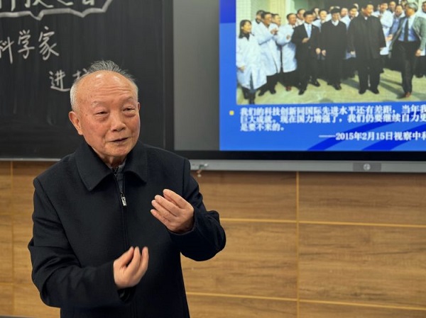 陈中仁研究员结合自身科研实践,还为同学们讲解了自己在西安光机所的发展历程,讲述自己参与的重大科学研究项目,并和同学们一起展望了航空航天的发展。贴近实际、深入浅出的讲解赢得了同学们的阵阵掌声。同学们用他们专注的眼神、热烈的互动表达着对老科学家的敬意。