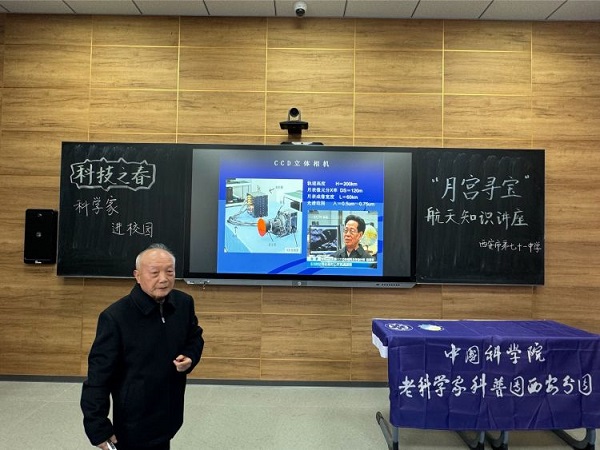 科普宣讲燃梦想,星火传承引未来。2024年3月25日下午,中国科学院老科学家科普团西安分团团长、中国科学院西安光学精密机械研究所陈中仁研究员为西安市第七十一中学高一年级的师生们带来了一场以“月宫寻宝”为主题的报告会,带领学生们一起感受科学精神。