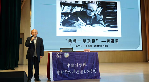 报告一开始,陈中仁指着屏幕上龚祖同院士的照片说:同学们,就是这位老人在西安光机所艰苦奋斗24年,为了拍摄中国第一颗原子弹成功发射,在资金匮乏、仪器简陋、技术不足的不利条件下,龚祖同坚定地以祖国的需要为我们的方向!带领大家自力更生研制出高速摄像机,我所科技人员赴现场操作,成功获得当时世界上最为清晰的原子弹爆炸早期火球序列照片,时间分辨率为微秒级。第一颗原子弹的爆炸,改变了我国落后就要挨打的局面。同学们听到这里肃然起敬,自豪感油然而生,掌声雷动!