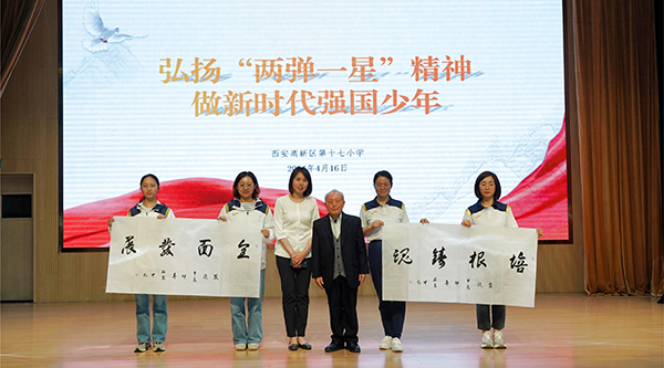 4月16日下午,应西安高新区第十七小学邀请,中国科学院老科学家科普巡讲团西安分团团长、中国科学院西安光学精密机械研究所陈中仁研究员,为360多名学生做了题为“弘扬两弹一星精神,做新时代强国少年”的科学报告,讲述两弹一星功臣龚祖同院士的科学报国人生故事。报告会由田宇科主持,校长金梅、副校长林娜和负责科技教育的老师及四位班主任参加。