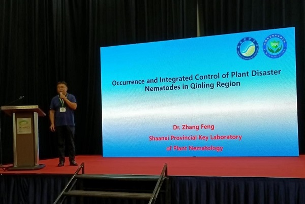 会议上,张锋作了名为“Occurrence and Integrated Control of Plant Disaster Nematodes in Qinling Region”的专题报告,从5个方面介绍了秦岭地区根结线虫的发生规律与防治方法,并提出针对马来西亚地区农业生产的病虫害防治技术要领。随后,戴佳锟副研究员以“HOW TO INCREASE THE INCOME FROM CORN PRODUCTION”为题作专题报告,一方面讲解了玉米种植中的主要病虫害类型和防治方法,另一方面介绍了高附加值花青素玉米的品种开发及产业发展新模式。
