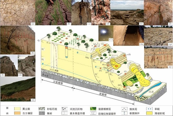 黄土塬边垂直节理的形态特征、发育规律及对塬边侵蚀和滑坡的影响。