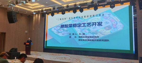 撩酸菜稳产工艺项目是省微生物所在2023年度陕西省科学院“一所一品”揭榜挂帅项目支持下,针对传统地方特色食品-紫阳撩酸菜缺乏统一的产品质量标准、生产效率低、产品坏损率高等实际问题开展的科技攻关项目。该项目目前通过制定陕西省食品安全地方标准、建立紫阳撩酸菜来源微生物种质资源库、建立撩酸菜高效稳定生产工艺等措施,实现了保障食品安全、缩短发酵周期、降低产品坏损率的目标。