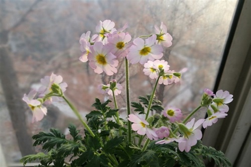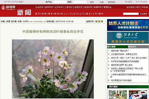 张莹课题组通过采用不同时间播种及温度控制技术,将一般生于海拔900~1000米,天然次生落叶阔叶林下、湿润且多砂石土壤中的陕西羽叶报春,引种栽培在海拔430米的西安植物园,不但成活而且花期提前了2-3月,已在当下的12月底开放。