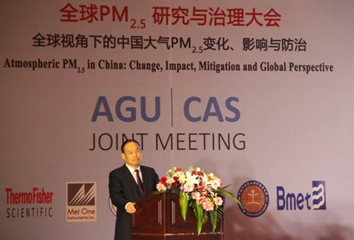 此次会议汇集了全球顶尖的PM2.5研究、空气污染、大气化学、模式模拟、污染控制、气溶胶技术等领域专家,有来自世界各地20多个国家和地区约800人参加了会议,共收到会议摘要450余份,180多个口头报告,270多个poster报告,是全球PM2.5研究与治理领域的一次顶级盛会。会议邀请到诺贝尔化学奖/泰勒奖获得者、美国科学院院士、加州圣迭戈大学教授Mario Molina做“Air Quality and Climate Change: Science and Politics”的大会报告;全球气候变化之父、唐奖和Sophie等大奖获得者、美国科学院院士、哥伦比亚大学教授James Hansen做“Aerosol Effects on Climate and Human Health: Urgent Research Needs”的大会报告;瑞士保罗谢勒研究所Urs Baltensperger教授做“Multiple Players Have an Influence on New Particle Formation: an Overview on the CLOUD Experiments at CERN”的大会报告;美国工程院院士、明尼苏达大学教授David Pui做“Green Technologies for Sustainable Environment”的大会报告;中国工程院院士、清华大学教授郝吉明做“The Progress and Challenge of the Air Pollution Control in China”的大会报告;泰勒奖获得者、美国科学院院士、加州伯克利大学教授Kirk Smith做“Pioneering efforts in India and China Signal a New Dawn for Air Pollution Control”的大会报告。英国皇家学会院士Roy Harrison、中科院院士安芷生、周卫健、中国工程院院士刘文清、贺克斌、张远航,以及哈佛大学Daniel Jacob、普林斯顿大学Denise Mauzerall、卡耐基梅农大学Neil Donahue、衣阿华大学Gregory Carmichael 、Aerodyne研究公司Douglas Worsnop、路易斯安那州立大学Huiming Bao、台湾交通大学蔡春进、香港理工大学李向东、香港城市大学Chak Chan、暨南大学刘绍臣、北京大学朱彤、兰州大学黄建平、浙江大学俞绍才教授等30多位国内外著名学者应邀做keynote报告。AGU主席Eric Davidson教授率领AGU代表团专程来参加会议,包括AGU执行总裁Christine McEntee女士、AGU出版主任Brooks Hanson先生、JGR主编张明华教授等。