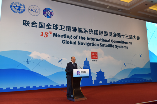 11月5日,由中国卫星导航系统委员会主办,中国科学院国家授时中心承办的联合国全球卫星导航系统国际委员会(ICG)第十三届大会在陕西西安开幕。中国卫星导航系统委员会主席王兆耀,陕西省委书记、省人大常委会主任胡和平,陕西省委常委、常务副省长梁桂,陕西省委常委、西安市委书记王永康,北斗卫星导航系统总设计师杨长风,中国科学院副院长、党组成员相里斌,联合国外空司空间应用处处长卢克·圣·皮埃尔、ICG执行秘书处主管官员莎拉法特·加迪莫娃,以及外交部、国家航天局、国家知识产权局、中国航天科技集团、中国兵器工业集团、中国电子科技集团等单位代表出席会议。中国卫星导航系统管理办公室主任冉承其作为大会主席主持会议。