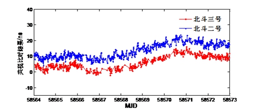 近日,中国科学院国家授时中心时间频率基准实验室研究人员利用北斗三号卫星,采用双频共视法,实现了我国时间基准UTC(NTSC)与捷克国家时间基准UTC(TP) 的亚欧长基线国际时间比对。在当前北斗三号共视可视卫星比北斗二号数少一半的情况下,达到共视比对精度1.2ns,提升幅度约19%。