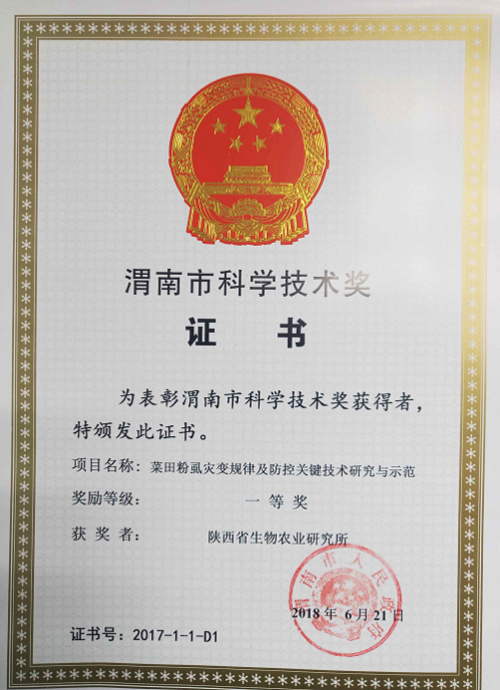 近日,省生物农业研究所两项科研项目分获陕西省及渭南市科学技术奖。