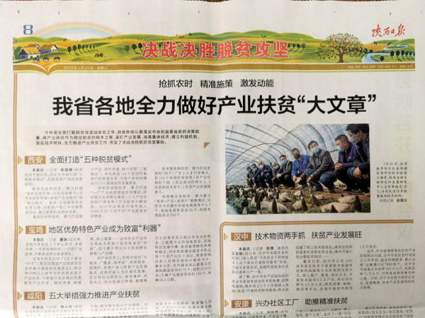 2020年3月25日,《陕西日报》以“我省各地全力做好产业扶贫‘大文章’”为题介绍了全省各地市积极开展产业扶贫的举措,文中以图文并茂的方式介绍了陕西省微生物研究所李峻志研究员积极参加“科技之春”活动、为渭南市华州区村民和广大网友进行羊肚菌栽培技术直播培训的情况。