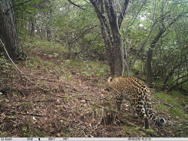 以陕西省动物研究所自然保护地和湿地动物监测研究中心为主导的全国第二次陆生野生动物资源调查组在延安市黄陵县柳芽林场的监测样线中发现成年豹。从视频看,豹从红外相机前从容走过,还出现了高举尾巴伴并随暂停等行为5秒余,像是便溺标记领地或警戒的动作。另外,在豹的发现地点内同时还监测到许多狍、狗獾、野猪、蒙古兔等野生动物,表明处于食物链顶端的旗舰物种豹的食物来源充足,区域性生物多样性丰富。