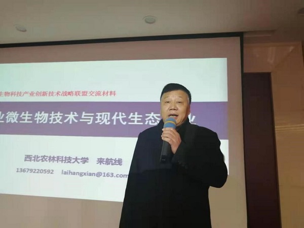会后,由西北农林科技大学来航线教授做《农业微生物技术与现代生态农业》专题报告,报告内容包括现代农业发展约束及瓶颈,微生物肥料及植物调控,植物健康管理与生态施肥,微生物饲料与生态养殖,农业废弃物无害化及资源化利用等技术。