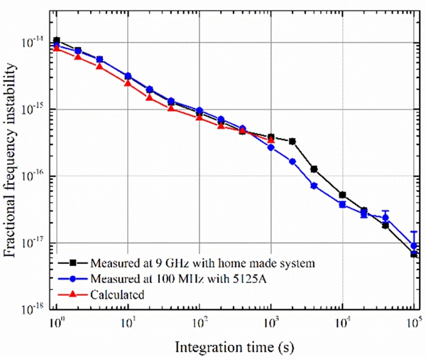 近年来,国家授时中心科研人员对光纤微波频率传递进行了全面深入的研究,改进了典型的电相位补偿方案,克服光纤寄生反射的影响,简化系统结构,设计了光纤微波频率传递方案授权发明专利《变频补偿微波频率传递系统及方法》(ZL201711216363.9)。其中,在112 km实地光纤上的传递稳定度为4.2×10-15@1s和1.6×10-18 @ 1d,利用三套传递系统,在300 km光纤上实现了频率级联传递,传递稳定度为1.1×10-14 @ 1s和6.8×10-18@ 105s。该成果表明国家授时中心已完全掌握光纤微波频率传递的关键技术,为国家重大科技基础设施“高精度地基授时系统/光纤微波分系统”的建设奠定了必要技术基础。