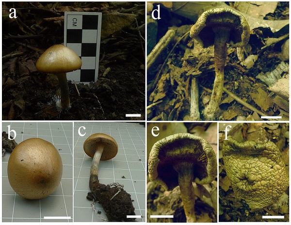 近日,陕西省微生物研究所真菌研究中心团队在国际分类学期刊《Phytotaxa》上发表了题为“Psilocybe ningshanensis (Hymenogastraceae, Agaricales), a new species from China”的研究论文,正式发布了一个秦岭地区大型真菌新种。该新种是野外科考团队在对秦岭地区持续开展大型真菌本底资源调查时发现的疑似新种之一,后续通过分子序列与形态学研究,证明该物种是从未被报道过的一个新种,目前已知仅分布于陕西省安康市宁陕县,故命名为“宁陕裸盖菇 Psilocybe ningshanensis”。