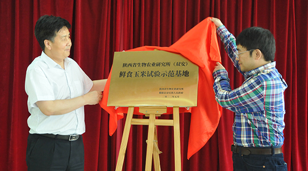 5月26日,陕西省生物农业所鲜食玉米试验示范基地签约揭牌仪式在安康市紫阳县双安镇举行。陕西省委科技工委委员、陕西省科技厅二级巡视员郭杰、陕西省科技厅农村科技处处长王云岗、陕西省农村科技开发中心主任雷玉山、紫阳县副县长朱宏康、中国科学院西安分院 陕西省科学院科技处副处长谭家海、陕西省生物农业研究所副所长李本光、陕西省生物农业研究所示范基地主任戴佳琨等出席或参加签约挂牌仪式。双安镇党委副书记、镇长邱洪靖主持揭牌仪式。