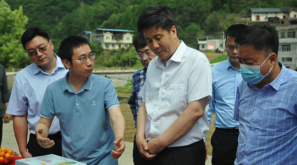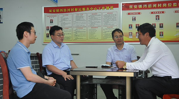 5月27日,谭家海与李本光、戴家琨冒雨来到中国科学院西安分院 陕西省科学院对口包扶的双安镇沔浴河村,了解村河提、滑坡道路修缮和今年开展科技项目增加村民、村集体收入的部署落实等情况。在沔浴河村委会,谭家海与村支部书记杨运华重点就做好脱贫攻坚和乡村振兴的衔接工作,以及村民通过科技产业增收等内容进行深入沟通。