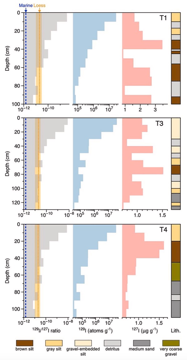图1. 雪水河阶地沉积物碘同位素深度分布特征