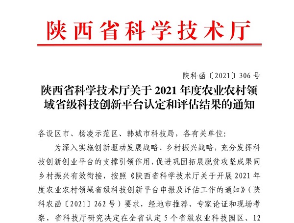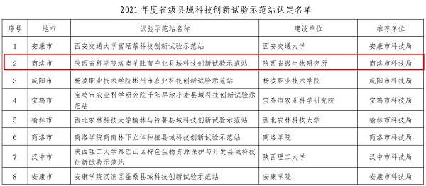 近日,陕西省科技厅印发了《关于2021年度农业农村领域省级科技创新平台认定和评估结果的通知》,陕西省微生物研究所建立的“洛南羊肚菌产业县域科技创新示范站”通过评估,被认定为省级县域科技创新试验示范站。