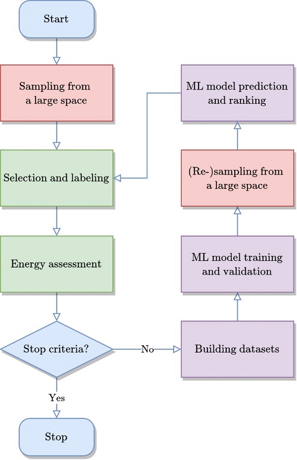 基于主动学习的辣搜(LAsou)方法进行材料结构预测的流程图