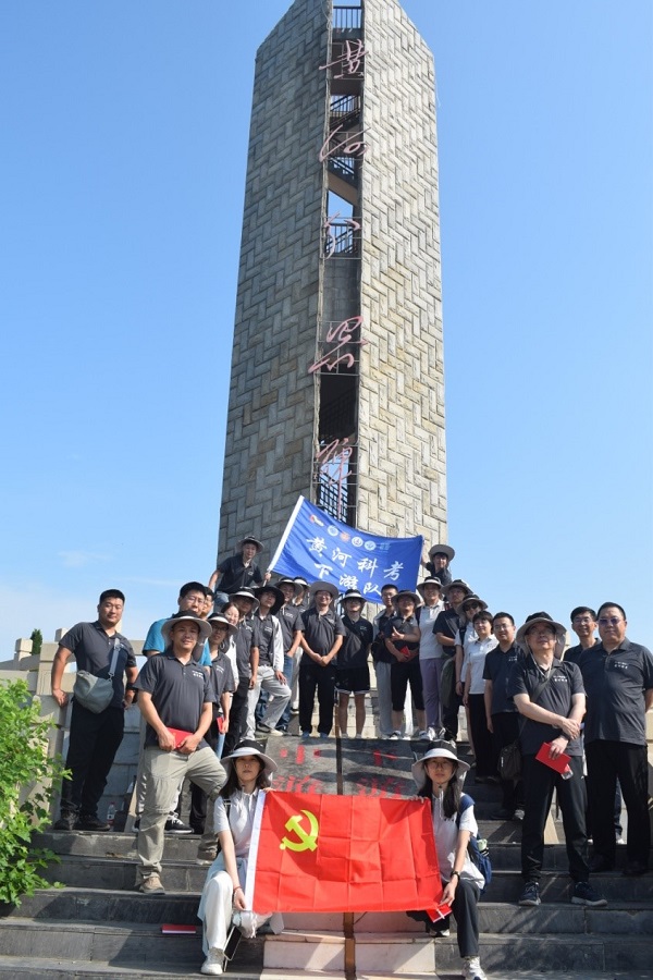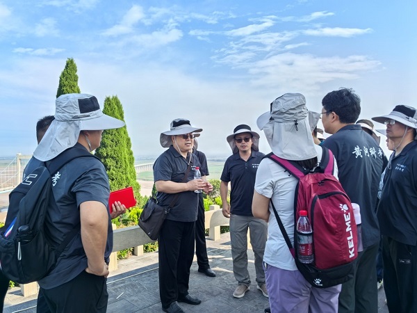 上午,科考队全体队员前往黄河中下游分界碑、花园口事件记事广场、黄河博物馆、“模型黄河”实验基地进行实地学习。在黄河中下游分界碑处,科考队员李勇、李军华详细介绍了桃花峪作为黄河中下游分界线的重要性、黄河下游河段的河性特征及治理方略等。在郑州市惠济区的花园口事件记事广场,通过讲解员的讲解,科考队了解和掌握了1938年花园口决堤后所造成的生态灾害影响,1958年、1982年、1996年、2010年等水位线及洪水流量情况,以及“花园口记事广场”的由来等。在郑州“模型黄河”试验基地,李军华介绍了“原型黄河”“模型黄河”“数字孪生黄河”的建设情况。