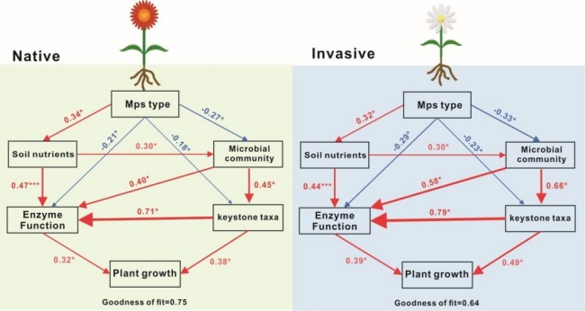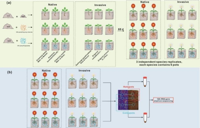 在全球变化背景下,生态系统正同时遭受外来物种入侵和微塑料污染的双重压力。尽管已有研究关注了微塑料对土壤性质或植物生长的独立影响,但其如何通过调节植物与根际微生物的互作关系来影响入侵进程,至今仍不明确。