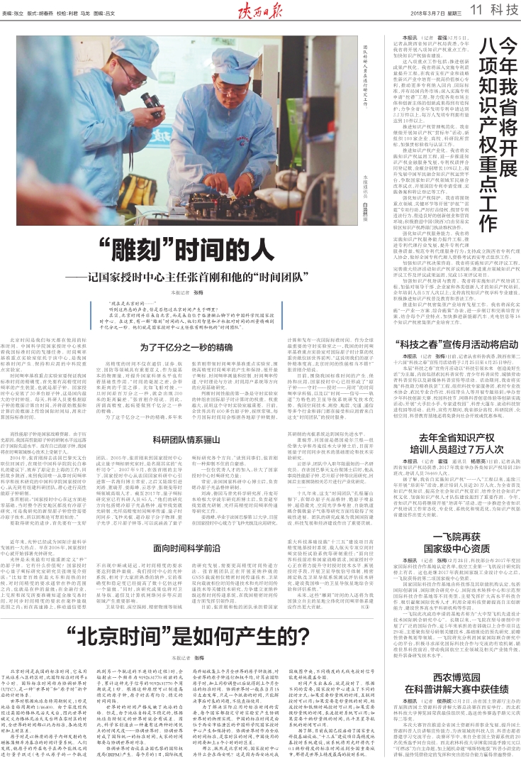 目前,围绕我国标准时间的产生、保持和应用,国家授时中心已经形成了“原子钟——守时——授时——用时”的时间频率学科链,以及以“时间——信号——轨道”为特色的卫星导航系统研发技术优势。我国空间技术、测绘、地震、交通、通信等多个行业和部门都在接受和应用着来自这支“时间团队”的授时服务。
