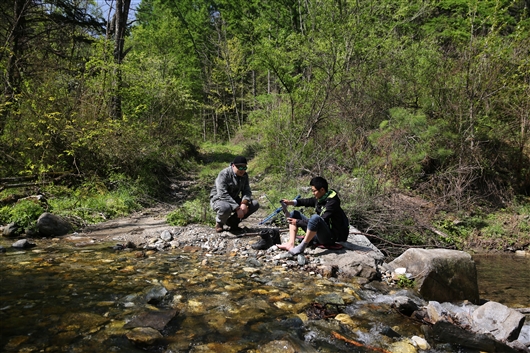 “春节前的元月份,有村民说在沟口的河边看见两头林麝,其中一头好像还戴有你们套的项圈。”秦岭宁东林业局响潭沟的村民吴立奎,一边在前面引路行走,一边回答着陕西省科学院动物研究所王艳副研究员、西北大学生命科学院齐晓光教授和陕西省科学院科技处处长孟繁东等急切要了解到有关13头野化放归的林麝的信息。