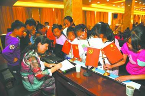 祁云枝研究员在为学生签名(本报记者张行勇摄影报道 )
