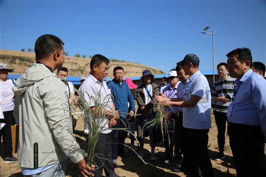 6月3日,由陕西省科学院作为主持单位承担的国家重点研发计划项目——“秦巴山、吕梁山主要经济作物提质增效技术集成研究与示范(2018YFD1001000)”在榆林市举行了“佳县农作物抗旱新品种选育高产模式研究示范”实施情况现场会,检查、总结自项目立项以来取得的阶段性进展,为进一步加强项目实施管理,促进各子课题之间交流学习,确实做好做实研究示范任务,以确保重点专项高水平实施,高质量推进。陕西省科技厅管理部门领导、山西省农业科学院副院长张强研究员、 项目首席负责人万一研究员和项目各课题负责人、部分骨干成员以及榆林市科技局、佳县科技局、佳县农业局、榆林学院等有关领导和专家参加现场会,特邀国家谷子高粱产业技术体系首席科学家、中国农业科学院作物科学研究所刁现民研究员和山西省农业厅玉米专家指导组组长、山西农业大学郝建平教授及项目专家成员张兴昌研究员、佳县县委常委、常务副县长贾浩飞、县委常委、副县长徐辉等出席现场会活动。张强主持现场会。