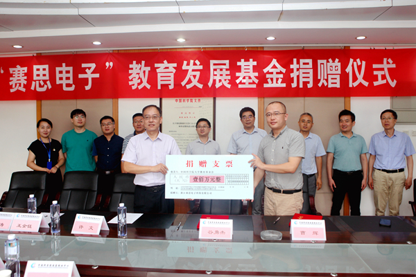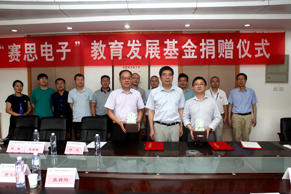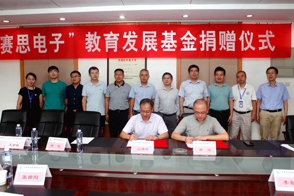 7月15日,“赛思电子”教育发展基金捐赠仪式在国家授时中心科研楼二楼会议室举行。国家授时中心主任张首刚、纪委书记李晋芳,浙江赛思电子科技有限公司(以下简称赛思电子)董事长许文、副总经理曹辉,中国科学院大学教育基金会副主任谷勇杰,以及及授时中心部分职能部门负责人、研究生导师、在学研究生学生以及教育处人员参加,仪式由李晋芳主持。