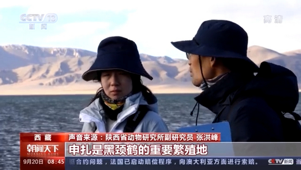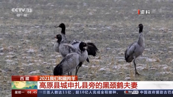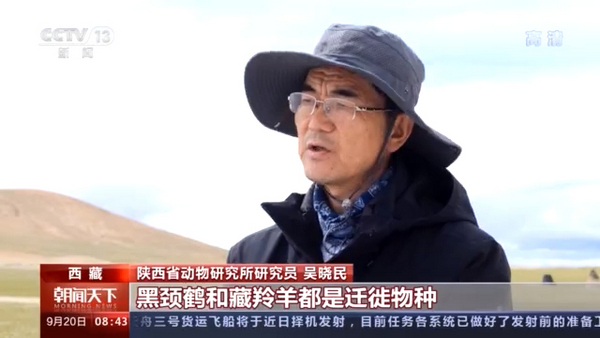 陕西省动物研究所研究员 吴晓民:黑颈鹤和藏羚羊都是迁徙物种,另外在这个区域里面,既是藏羚羊在这里产崽,黑颈鹤也在这里产卵包括育雏。我们想,对黑颈鹤的监测可能会对我们藏羚羊(监测)起到一些启发或者是给我们提供一些好的思路。