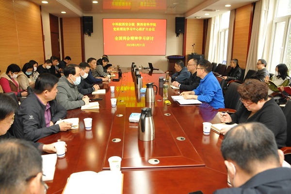 3月21日上午,中科院西安分院 陕西省科学院召开第三次党组理论学习中心组学习(扩大)会议,传达学习2023年全国两会精神。分省院党组副书记詹瑞、西安分院纪检组长康贸易、副院长陈怡平,分省院机关全体职工参加。詹瑞主持会议。