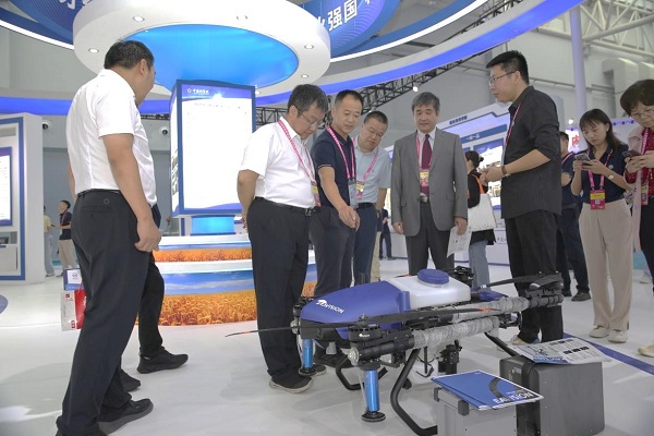 中国科学院参展的用于喷洒农药防控农业病虫害的“全域感知智能无人机”。张行勇 摄影