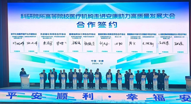 分省院长期对安康市进行科技帮扶,特别是在紫阳县双安镇沔浴河村等地,通过实施“一所一品”科技战略,集成示范了一批新成果,助力乡村振兴。会上,王浩市长与张首刚院长共同为陕西省科学院科技成果转移转化安康工作站揭牌。周孝斌副市长与杨青春副院长共同签署秦创原富硒产业创新聚集区建设战略合作协议。陕西省动物所、西安植物园和当地企业分别签署数字化林麝养殖平台共建协议、黄精炮制技术传承与饮片质量提升项目合作协议。中国科学院自动化所签署多模态主动感知与交互项目合作协议。中国科学院青岛能源所签署先进催化剂项目合作协议。