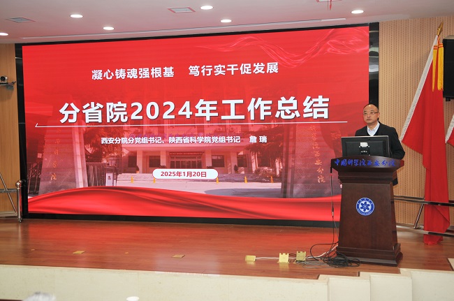 1月20日,中国科学院西安分院 陕西省科学院(以下简称“分省院”)召开全体职工大会,第一时间传达学习中国科学院2025年度工作会议精神,总结2024年度工作,对2025年重点工作作出安排。分省院党组书记詹瑞,分省院院长、党组副书记张首刚出席会议。西安分院纪检组组长、分省院党组成员李晋芳主持会议。