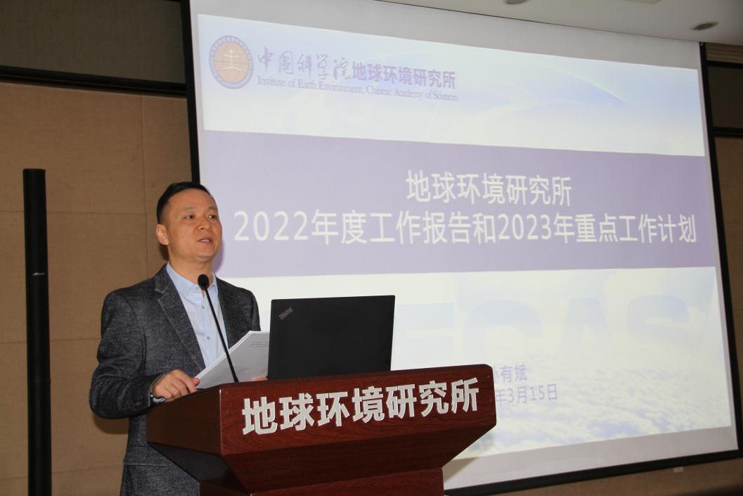 党委书记、所长孙有斌传达了中科院2023年度工作会议精神,作了《地球环境研究所2022年度工作总结和2023年重点工作计划》的报告。报告全面回顾了研究所2022年各项工作的进展和成效及取得的系列科研成果,从贯彻落实党中央、国务院重大决策部署和院党组决策部署情况、党建工作进展和成效、科研工作、人才队伍建设、科技体制改革、管理机制及支撑保障工作等方面对过去一年取得的成就进行了全面总结,分析了研究所发展中存在的问题,并有针对性地对落实2023年度院工作会议精神提出了工作思路和重点工作部署。