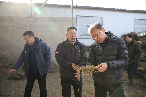 元月8日,晨曦微露,赵卫一行下飞机后,在榆林市副秘书长艾克彦、榆林市林业局副局长谢安鸿、神木市生态保护建设协会会长张应龙、副会长范文高等陪同下,冒着零下十度的严寒,直奔毛乌素沙漠治沙基地,观察栽种的樟子松林区、长柄扁桃及林草一体化种植模式示范区、防沙治沙土地改良与冬小麦试验区及建设中的科研大楼、豆科牧草引种试验区、生物有机肥中试厂区、植树固沙林区的特种养殖区、酿酒葡萄栽培试验田、长柄扁桃生态经济林模式建设示范点、无害化畜禽养殖示范项目等。在每一个考察点,赵卫等院领导及专家详细了解项目布局、创新点与效果、技术难点及产业化过程中遇到的问题,并不时与张应龙等交流、询问、了解。