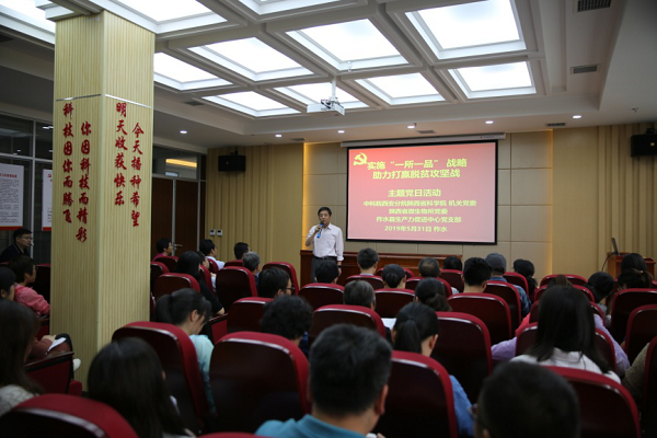 机关联合第二支部书记作了《习近平总书记关于脱贫攻坚“1234567”有关论述》报告,带领大家以习近平总书记关于脱贫攻坚的重要论述作为开展有关工作的指导思想、途径和方法,大力推进分省院扶贫工作;西安分院扶贫工作队驻紫阳扶贫村第一书记以《分省院扶贫工作》为题,充分展示了分院扶贫工作队成员咬紧扶贫任务目标,牢记责任与使命,以“不完成脱贫任务誓不回”的坚韧精神,在扶贫前线,入村入户,克服种种困难,积极集聚资源,脚踏实地做好扶贫工作;陕西省微生物所李峻志副所长、研究员以《“一所一品”助力秦巴科技扶贫》为题,介绍了科技人员十余年如何紧密围绕一项技术,围绕地方产业需求,以科技支撑地方发展,既有深入秦巴山区挖掘资源开展科研的艰辛,又有取得成果得到地方包括广大农民认可时的喜悦与欣慰。