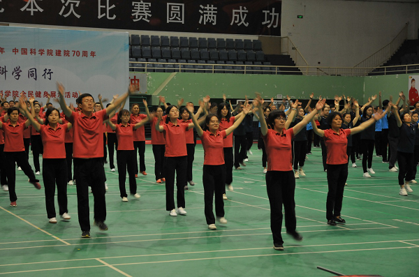 为搞好本次集中展示活动,分省院体协5月初就发出通知,并得到各单位积极支持和响应。在“全民健身月”期间,各单位根据自身情况和特点,先期开展了各具特色的活动,充分展示了“一所一品”。西安光机所举办了第三届现代舞比赛,授时中心举办了特色项目展示、地环所与西安文理学院开展篮球联谊赛、省院各单位进行了第九套广播操表演等等。据不完全统计,分省院系统约有1300余人参加了全民健身活动。这些工作和活动过程,充分体现了开展全民健身活动的意义,也为成功举办分省院全民健身集中展示活动打下了良好的群众基础。